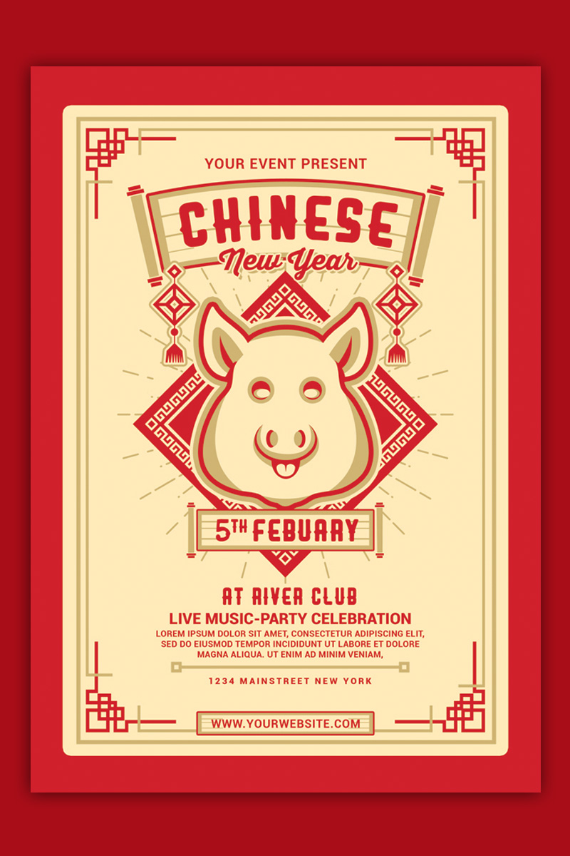 Download Фирменный стиль "Chinese New Year - Corporate Identity Template" / Chinese New Year - Corporate Identity Template - Фирменный стиль на тему графика celebration champagne party china 2019 chinese chinese new year pig disco flyer dragon gold years eve nightclub nye nye gold