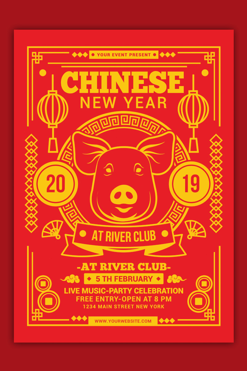 Download Фирменный стиль "Chinese New Year - Corporate Identity Template" / Chinese New Year - Corporate Identity Template - Фирменный стиль на тему графика birthday party celebration champagne china 2019 chinese chinese new year pig disco flyer dragon gold years eve nightclub nye nye