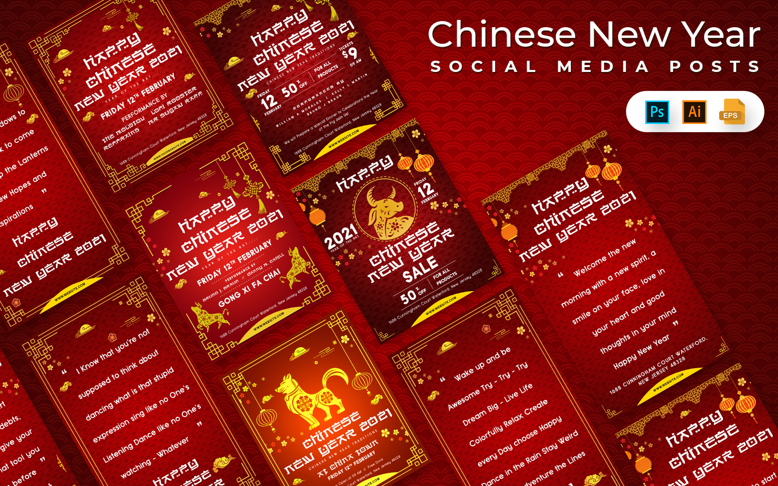 Download Шаблон для соцсетей "Chinese New Year Posts Social Media Template" / Chinese New Year Posts Social Media Template - Шаблон для соцсетей на тему графика chinese,newyear,socialmedia,banners,instagram,post,stories,facebook,pinterest,twitter,adbanners,ad,feed,insta