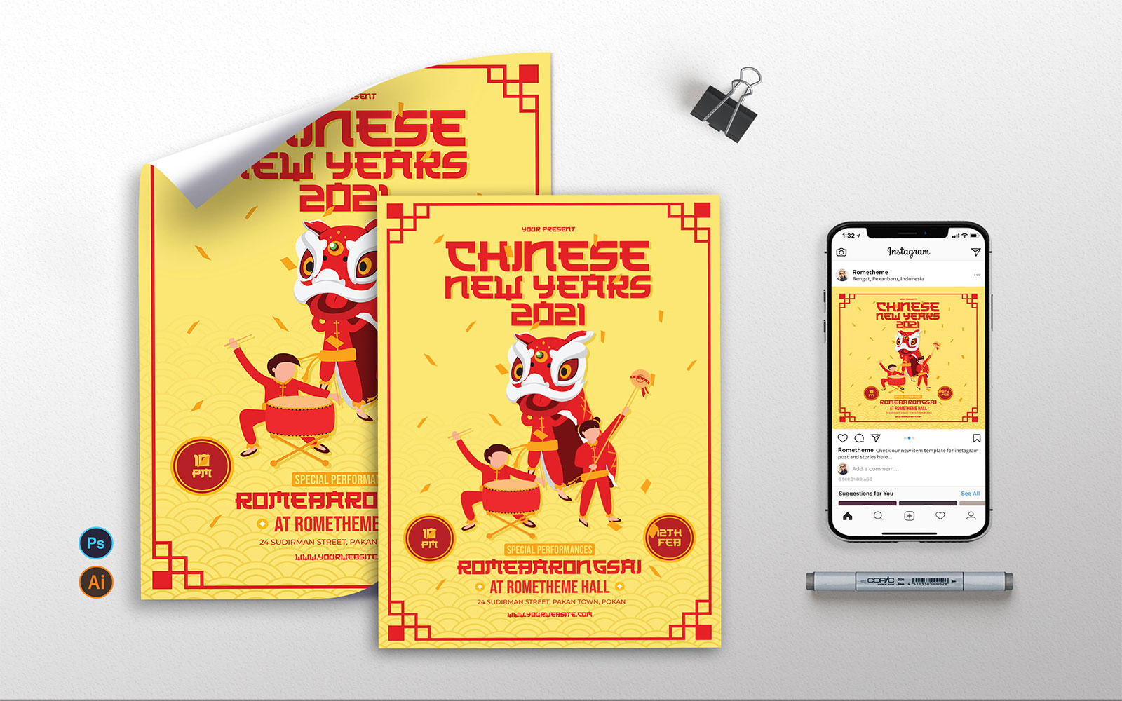 Download Фирменный стиль "Chinese New Years 2021 Vol.1 - Flyer, Poster, Instagram KF" / Chinese New Years 2021 Vol.1 - Flyer, Poster, Instagram KF - Фирменный стиль на тему графика chinese,ilustration,festival,celebration,new year,a4,a3,instagram,clean,full colour,barongsai,red,yellow events,promotion,flyer,poster,celebrate,2021