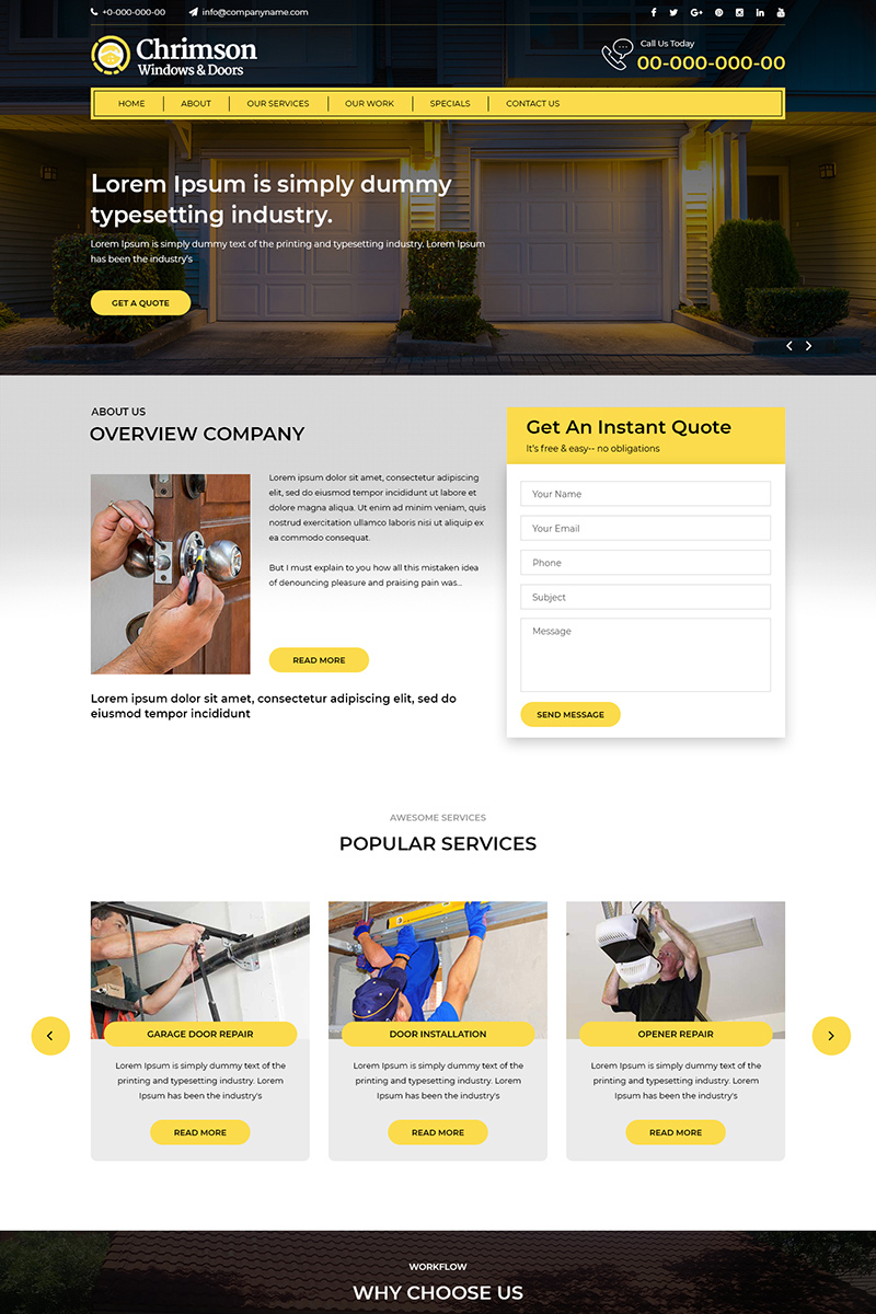 Download PSD шаблон "Chrimson - Garage Door PSD Template" / Chrimson - Garage Door PSD Template - PSD шаблон на тему графика garage door service template theme psd photoshop