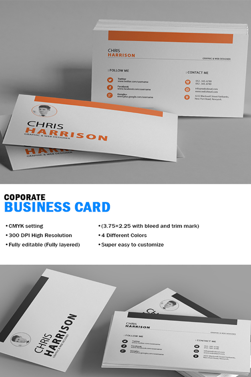 Download Фирменный стиль "Chris Harrison Corporate Business Card - - Corporate Identity Template" / Chris Harrison Corporate Business Card - - Corporate Identity Template - Фирменный стиль на тему графика business card clean corporate creative design horizontal mengloong personal professional psd qr stylish template unique white businesscard corporatecard