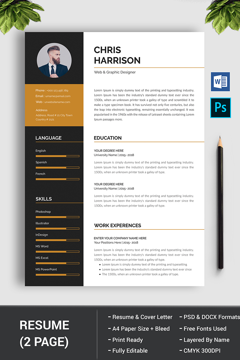Download Резюме "Chris Harrison Resume Template" / Chris Harrison Resume Template - Резюме на тему графика 1,page,resume,2,clean,cover,letter,creative,cv,design,document,docx,elegant,employment,infographic,minimalist,modern,ms,word,professional