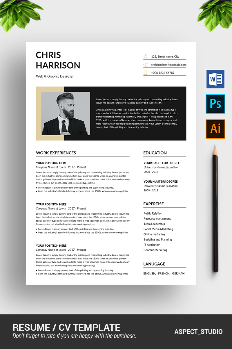 Download Резюме "Chris Harrison Resume Template" / Chris Harrison Resume Template - Резюме на тему графика 1,page,resume,2,3,a4,clean,cover,letter,creative,cv,design,document,docx,elegant,employment,infographic,minimalist,modern,ms