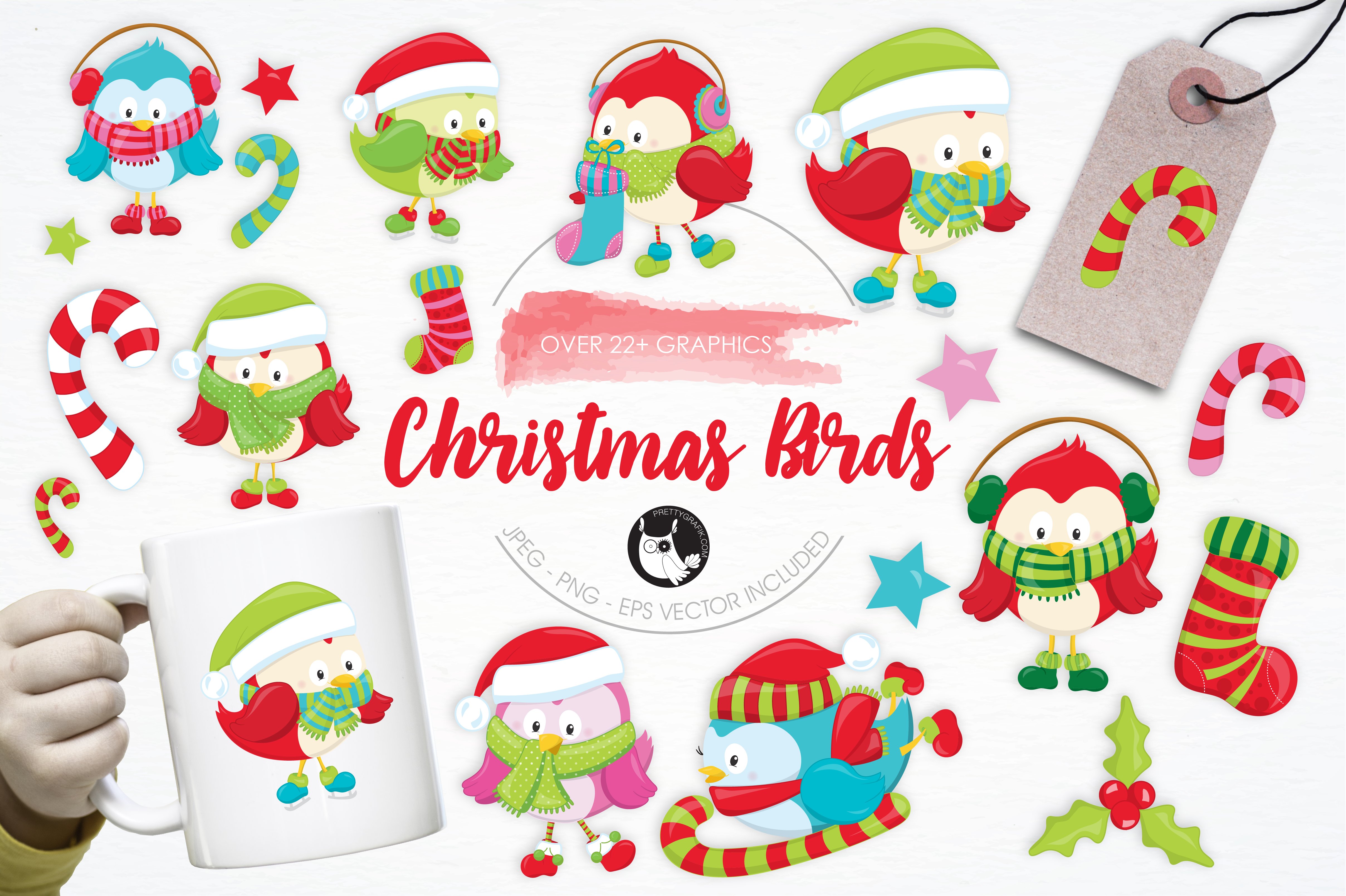 Download Vector "Christmas Birds illustration pack - Vector Image" / Christmas Birds illustration pack - Vector Image - Vector на тему графика christmas,illustration,winter,vector,graphics,clipart,holiday,clip art,animals,icon,birds,eps,prettygrafik,candycane,christmas birds