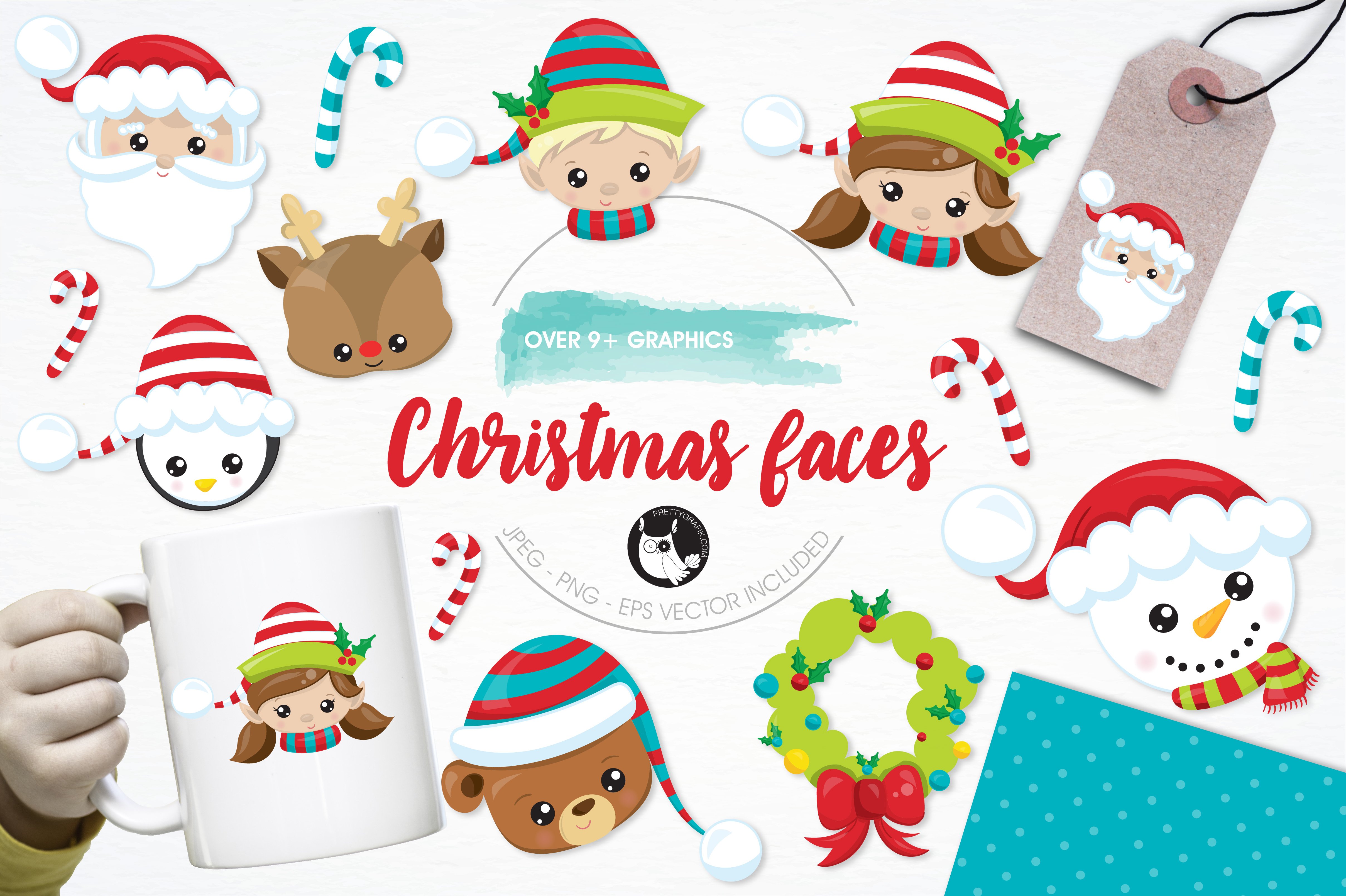 Download Vector "Christmas Faces Illustration Pack - Vector Image" / Christmas Faces Illustration Pack - Vector Image - Vector на тему графика christmas,illustration,vector,graphics,clipart,clip art,santa,icons,elf,snowman,reindeer,penguin,wreath,eps,candy cane,prettygrafik,faces,teddy bear