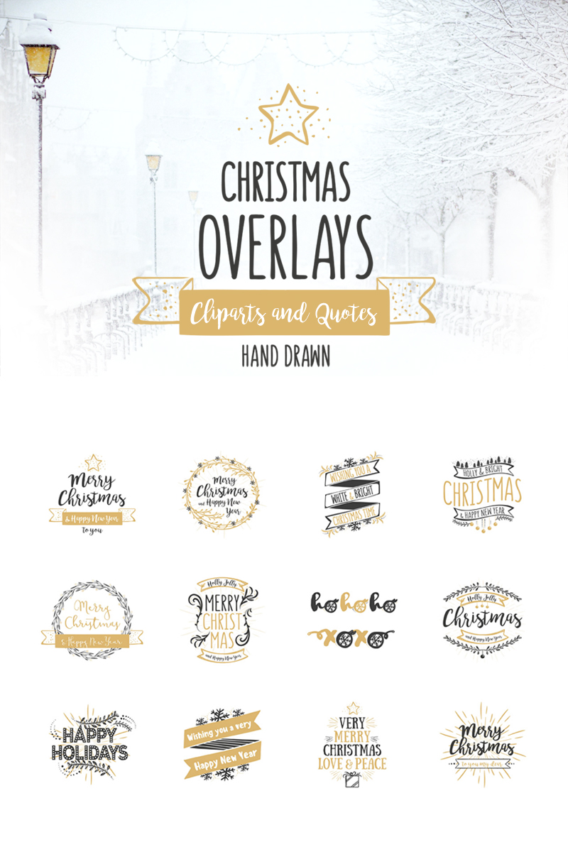 Download Иллюстрация "Christmas Overlays - Vector Set - Illustration" / Christmas Overlays - Vector Set - Illustration - Иллюстрация на тему графика christmas holidays overlay lettering tree ball snow clipart clip art illustration typography handdrawn handmade winter wording collection set text year