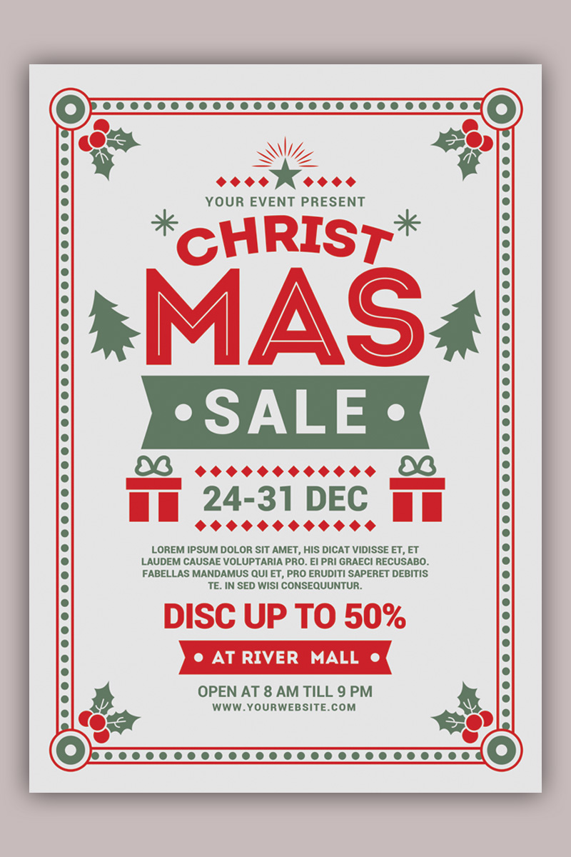Download Фирменный стиль "Christmas Sale Flyer - Corporate Identity Template" / Christmas Sale Flyer - Corporate Identity Template - Фирменный стиль на тему графика box boxes christmas day decoration decorations event flyer gift graphic holiday party sale december holidays merry xmas midnight retail ribbon