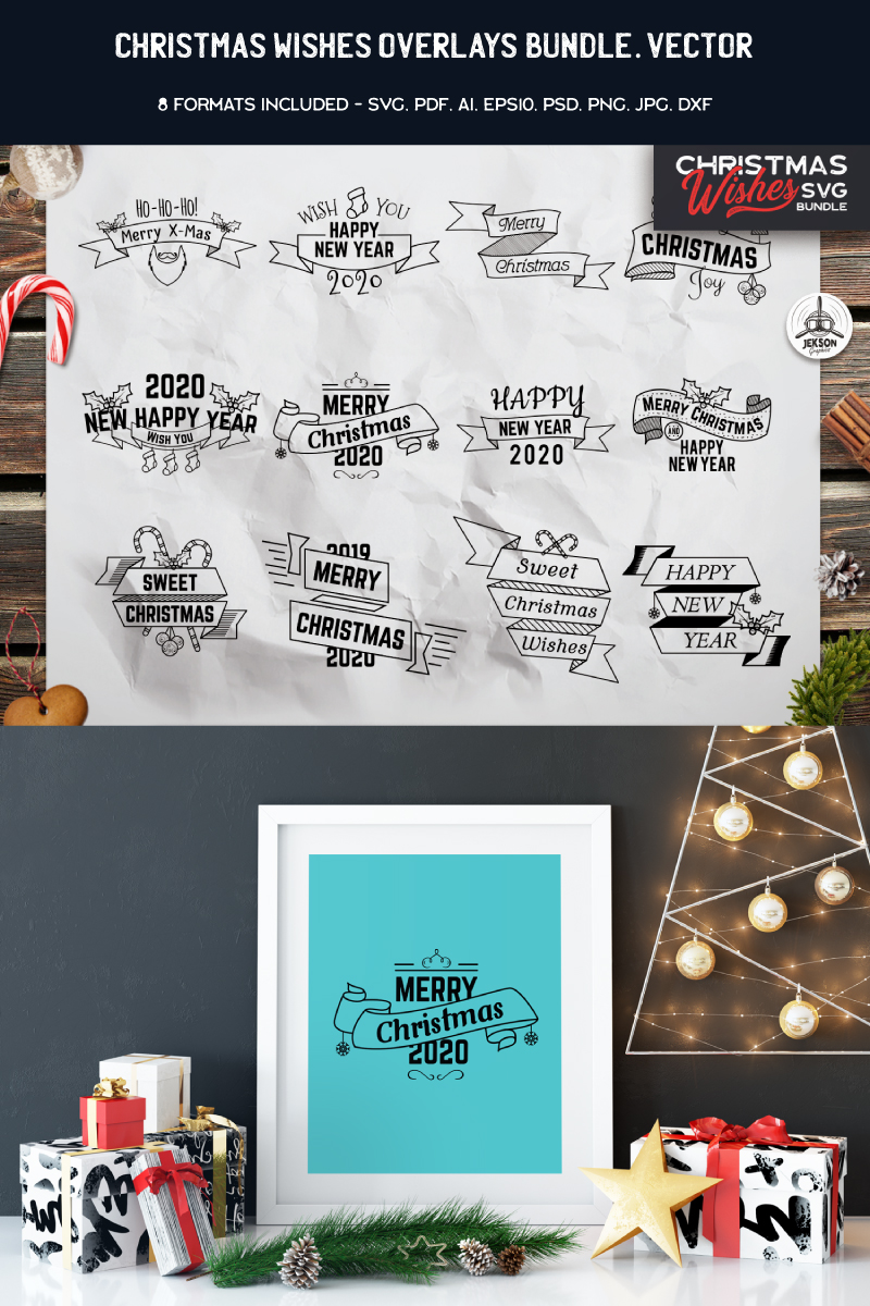 Download Иллюстрация "Christmas Wishes Overlays - Illustration" / Christmas Wishes Overlays - Illustration - Иллюстрация на тему графика christmas holiday xmas vector logo print sweater new year decoration template set svg bundle badges overlay t-shirt illustration typography