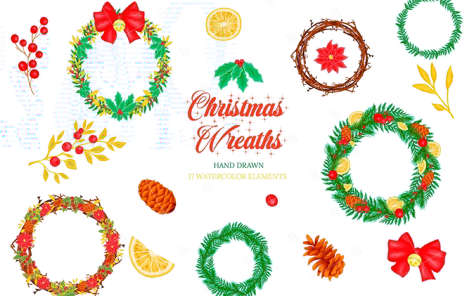 Download Иллюстрация "Christmas Wreaths Clipart - Illustration" / Christmas Wreaths Clipart - Illustration - Иллюстрация на тему графика christmas wreaths clipart,christmas watercolor clipart,winter clipart,christmas decoration,winter watercolor,christmas greeting card,christmas clipart,watercolor clipart,christmas arrangement