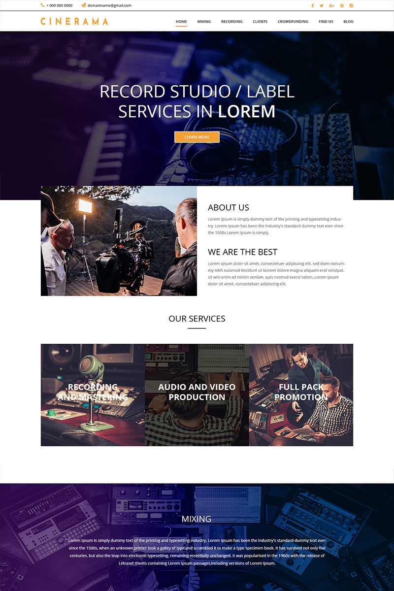 Download PSD шаблон "Cinerama - Audio Mix Studio PSD Template" / Cinerama - Audio Mix Studio PSD Template - PSD шаблон на тему графика audio mix studio theme template psd photoshop