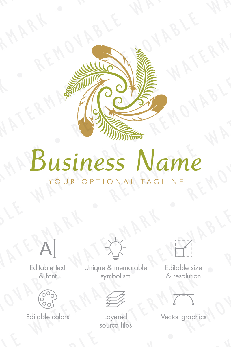 Download Шаблон логотипа "Circle of Fern & Feathers - Logo Template" / Circle of Fern & Feathers - Logo Template - Шаблон логотипа на тему графика fern feather nature sky earth indian native magic circle leaf sprout growth dream spiral vortex eagle spirit logo design template