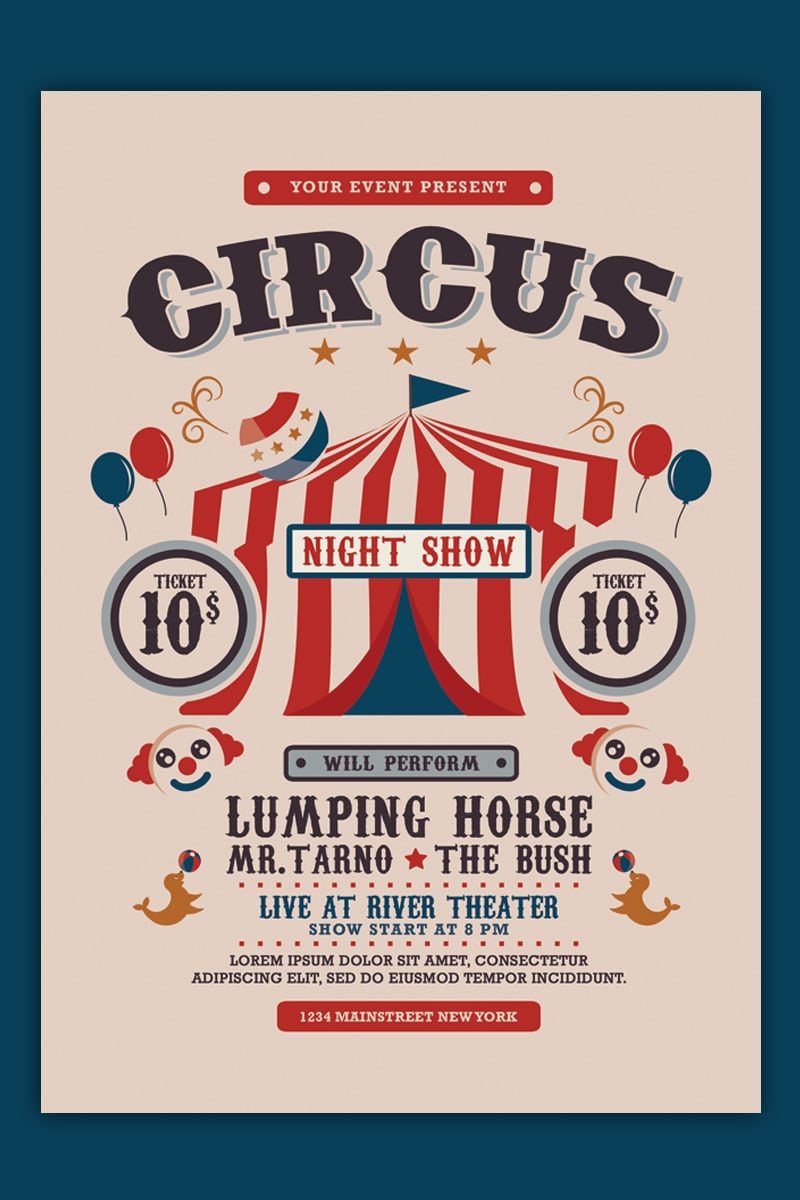 Download Фирменный стиль "Circus Carnival Show Flyer - Corporate Identity Template" / Circus Carnival Show Flyer - Corporate Identity Template - Фирменный стиль на тему графика arcade birthday party carnival flyer circus concert county fair event festival fun game games holiday invitation kid kids old post