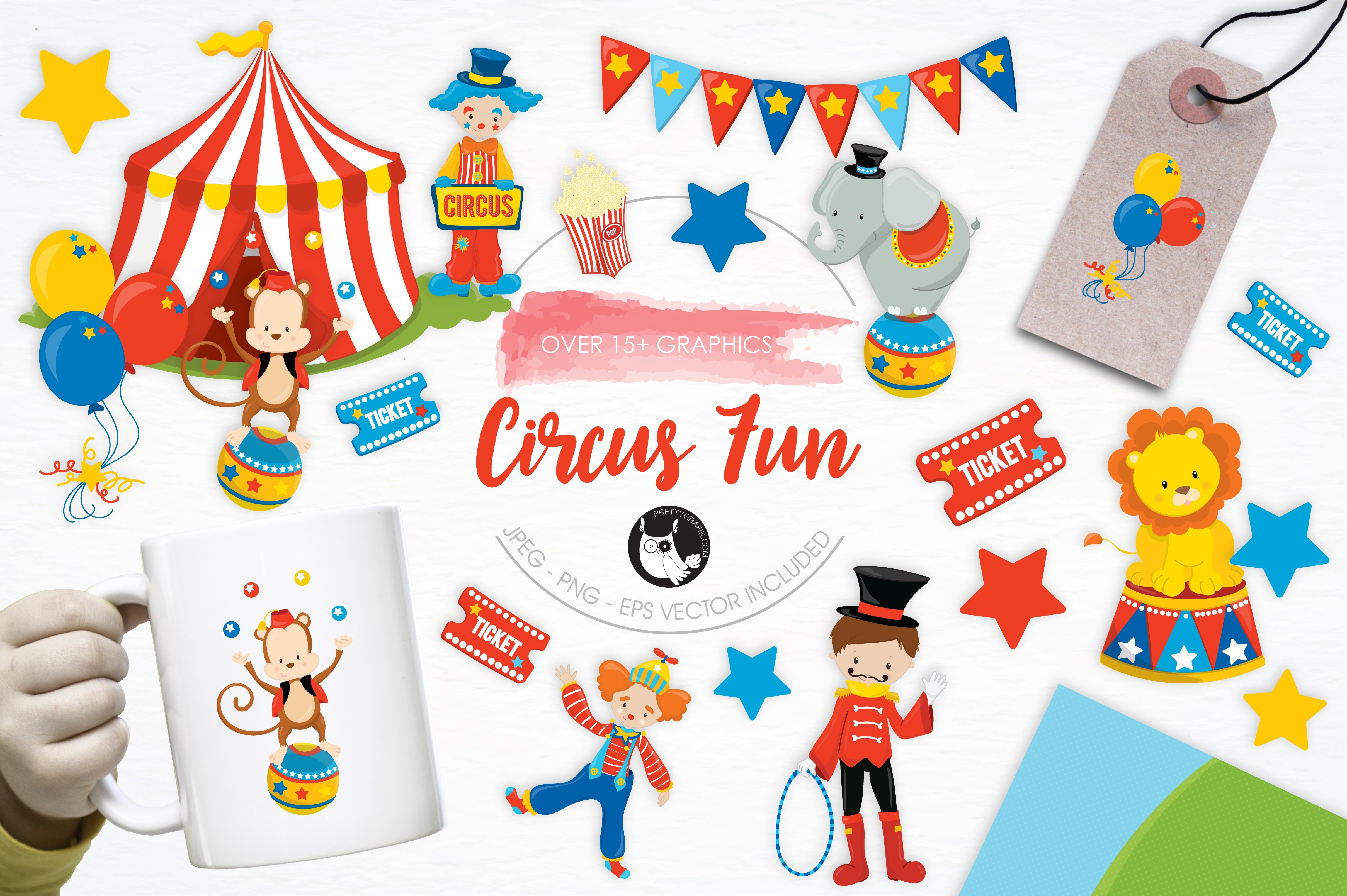 Download Vector "Circus Fun illustration pack - Vector Image" / Circus Fun illustration pack - Vector Image - Vector на тему графика fun,illustration,vector,graphics,clipart,clip art,icon,show,eps,lion,balloons,prettygrafik,circus fun,circus,clown