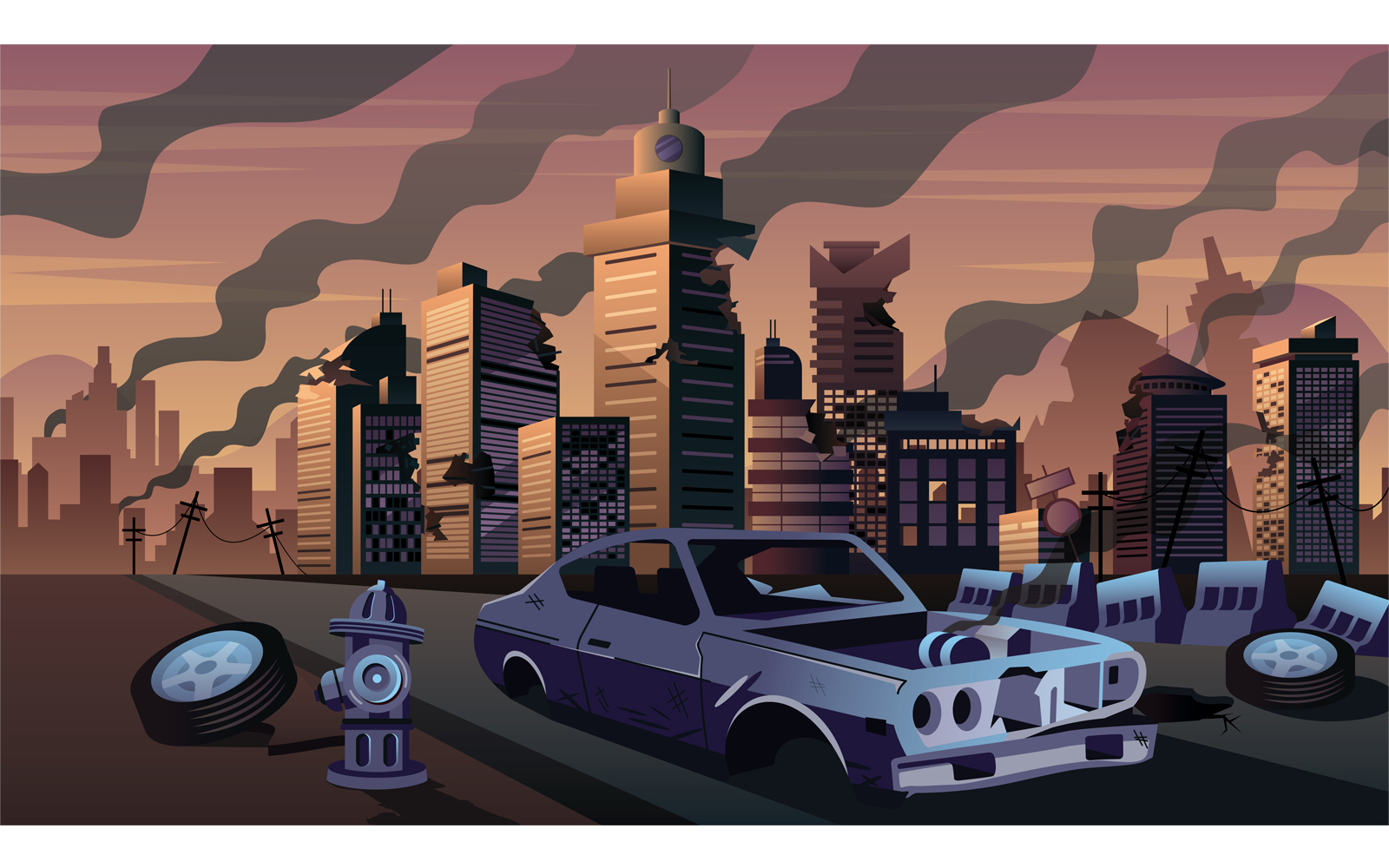Download Иллюстрация "City in Ruins - Illustration" / City in Ruins - Illustration - Иллюстрация на тему графика city,cityscape,destruction,cataclysm,catastrophe,architecture,ruin,ruins,disaster,destroyed,war,abandoned,apocalypse,background,landscape,building,skyscraper