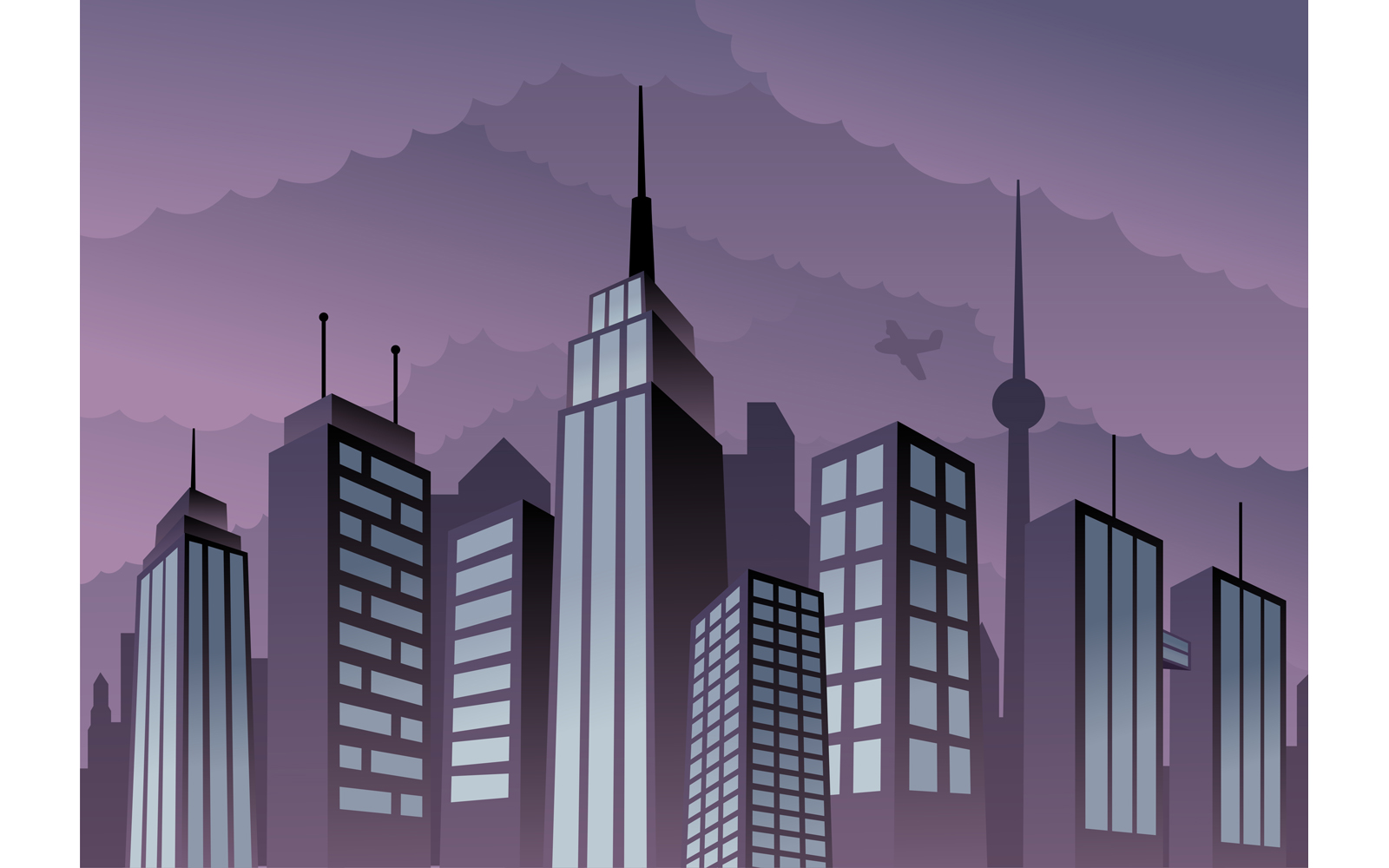 Download Иллюстрация "Cityscape - Illustration" / Cityscape - Illustration - Иллюстрация на тему графика city,cityscape,skyline,cartoon,retro,vintage,comic book,comic,book,retro revival,art deco,landscape,background,skyscraper,urban,scene,built structure,building,structure