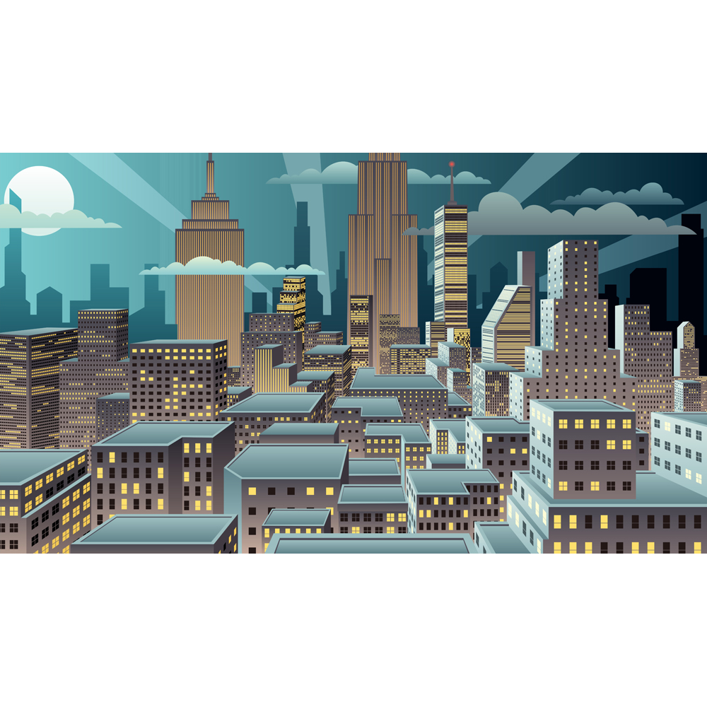 Download Иллюстрация "Cityscape Night - Illustration" / Cityscape Night - Illustration - Иллюстрация на тему графика city,cityscape,skyline,metropolis,downtown,center,night,evening,background,cartoon,horizontal,skyscraper,construction,urban,architecture,scene,landscape,built structure