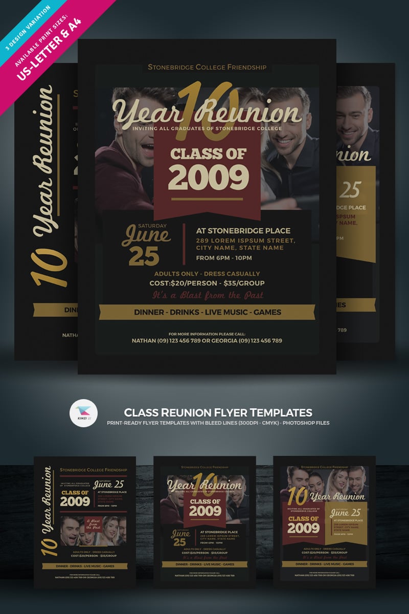 Download Фирменный стиль "Class Reunion Flyer - Corporate Identity Template" / Class Reunion Flyer - Corporate Identity Template - Фирменный стиль на тему графика activities agenda alumni class reunion college education farewell flyer graduates high leaflet night pamphlet party program school university