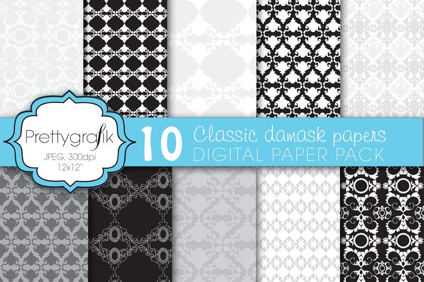 Download Vector "Classic Damask Digital Paper - Vector Image" / Classic Damask Digital Paper - Vector Image - Vector на тему графика scrapbooking,black,white,patterns,digital papers,digital art,digital scrapbooking,damask