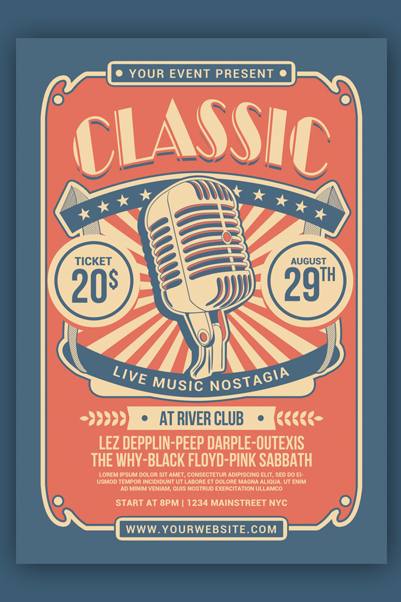 Download Фирменный стиль "Classic Music Show Flyer - Corporate Identity Template" / Classic Music Show Flyer - Corporate Identity Template - Фирменный стиль на тему графика 50's 60's advertising classic concert flyer cool diner disco dvd festival fun grunge invitation music old oldies party post radio