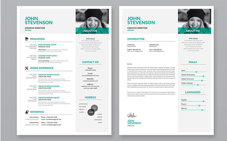 Download Резюме "Clean 3 Pages Resume Template" / Clean 3 Pages Resume Template - Резюме на тему графика 2 page,3 page,a4,clean,cv,design,elegant,elegant resume,female,female resume,feminine,infographic,letter,minimalist,modern,modern resume,portfolio,professional,resume,resume clean