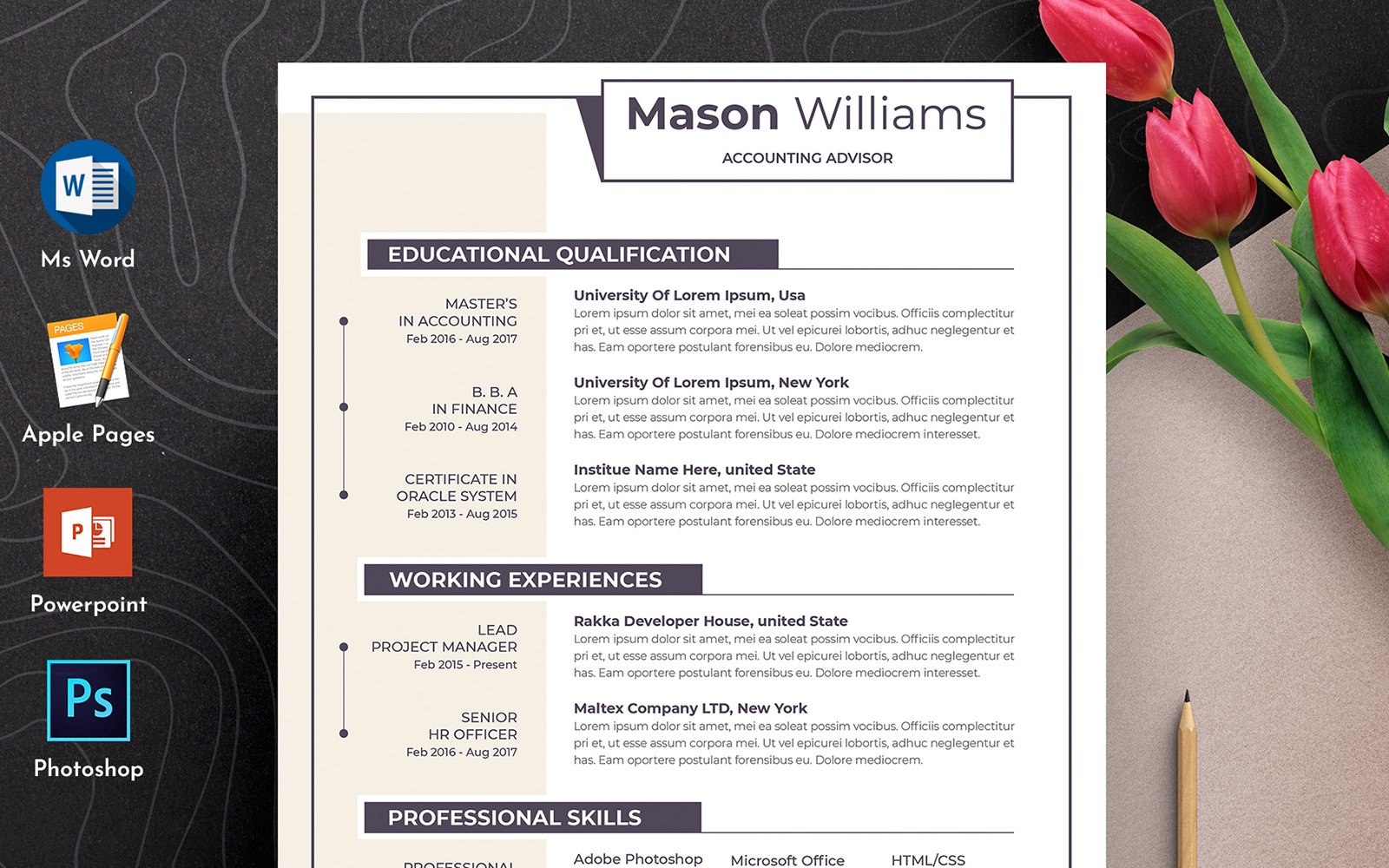 Download Clean & Professional Editable Word Apple Pages Cv Resume Template - Резюме на тему графика