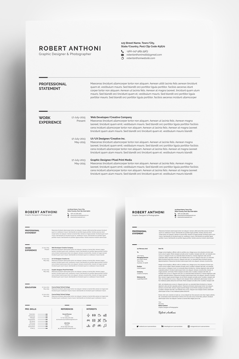 Download Резюме "Clean Resume - Designer/Developer/Photographer Resume Template" / Clean Resume - Designer/Developer/Photographer Resume Template - Резюме на тему персональная страница resume,cv,template,design,writing,creative,clean,modern,minimalist,professional,mac,pages,word,photoshop,illustrator,coverletter,instant,download,a4,us