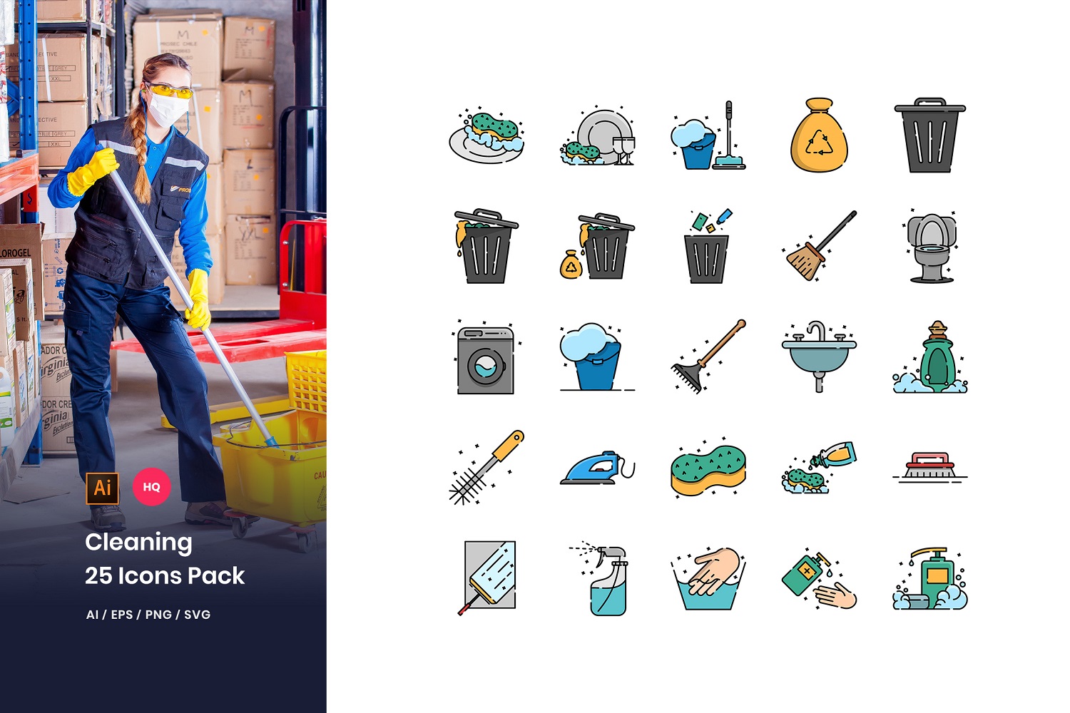 Download Набор иконок "Cleaning Pack Icon Set" / Cleaning Pack Icon Set - Набор иконок на тему графика icons,colorline,outline,cleaning,service,wash,washing,housework,equipment,tidy,white,toilet,plumbing,room,tool