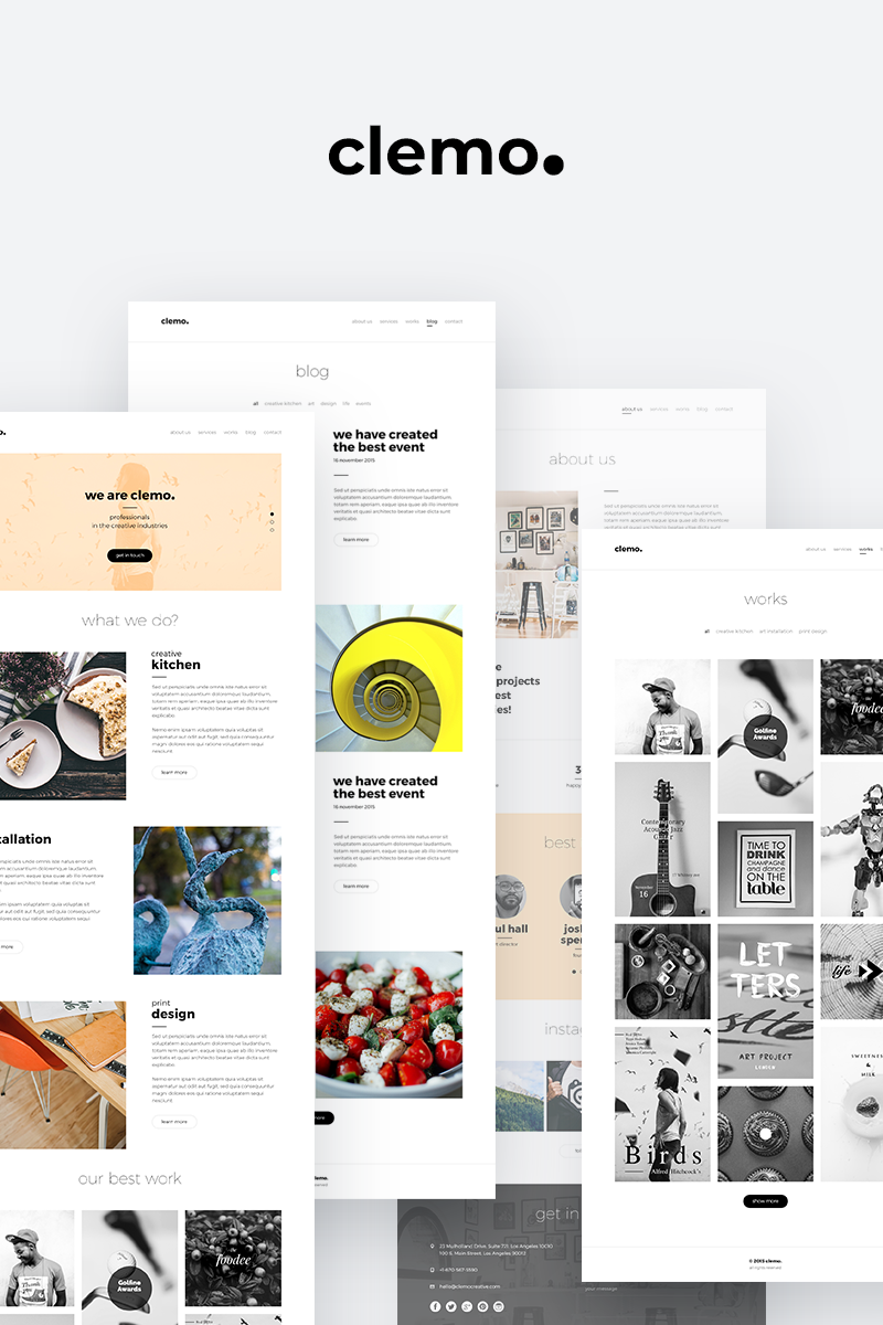 Download PSD шаблон "Clemo - Multipurpose PSD Template" / Clemo - Multipurpose PSD Template - PSD шаблон на тему дизайн и фотография creative template psd photoshop clean modern studio agency ux ui minimal blog portfolio team pages layouts