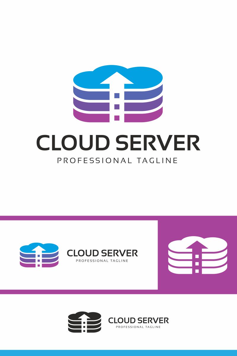 Download Шаблон логотипа "Cloud Server Logo Template" / Cloud Server Logo Template - Шаблон логотипа на тему графика blue cloud computing host hosting up upload download network server service sky smart objects