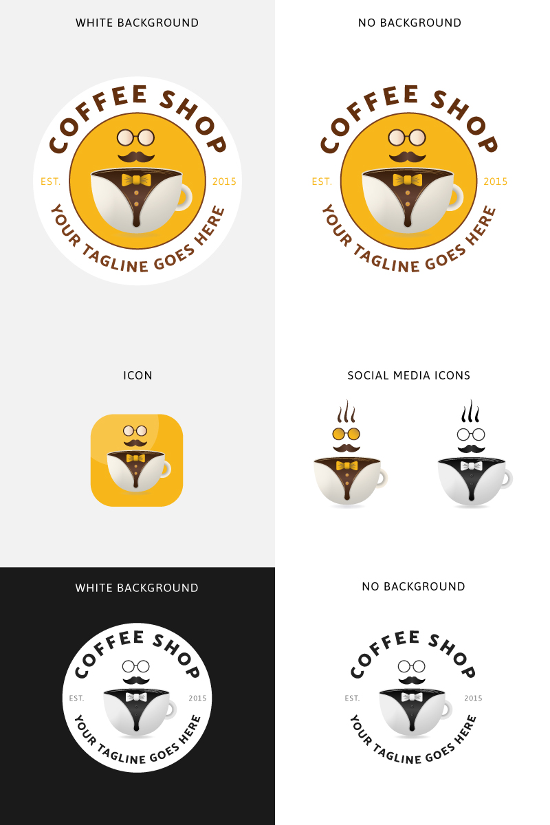Download Шаблон логотипа "Coffee Shop Logo Template" / Coffee Shop Logo Template - Шаблон логотипа на тему графика cafe coffee shop bar bistro takeaway yellow black white hipster