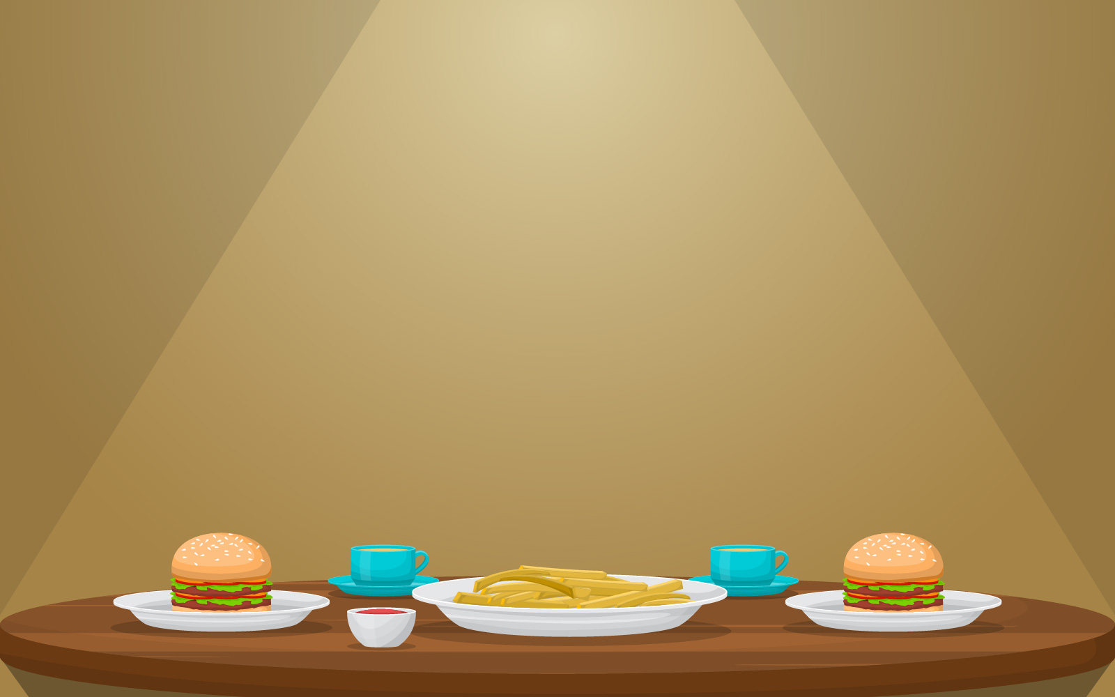 Download Иллюстрация "Coffee Table Restaurant - Illustration" / Coffee Table Restaurant - Illustration - Иллюстрация на тему графика cup,coffee,table,cafe,restaurant,golden,background,illustration,vector,snack,meal,burger,french fries,ketchup,light,sweet,design,flat,style,apartment