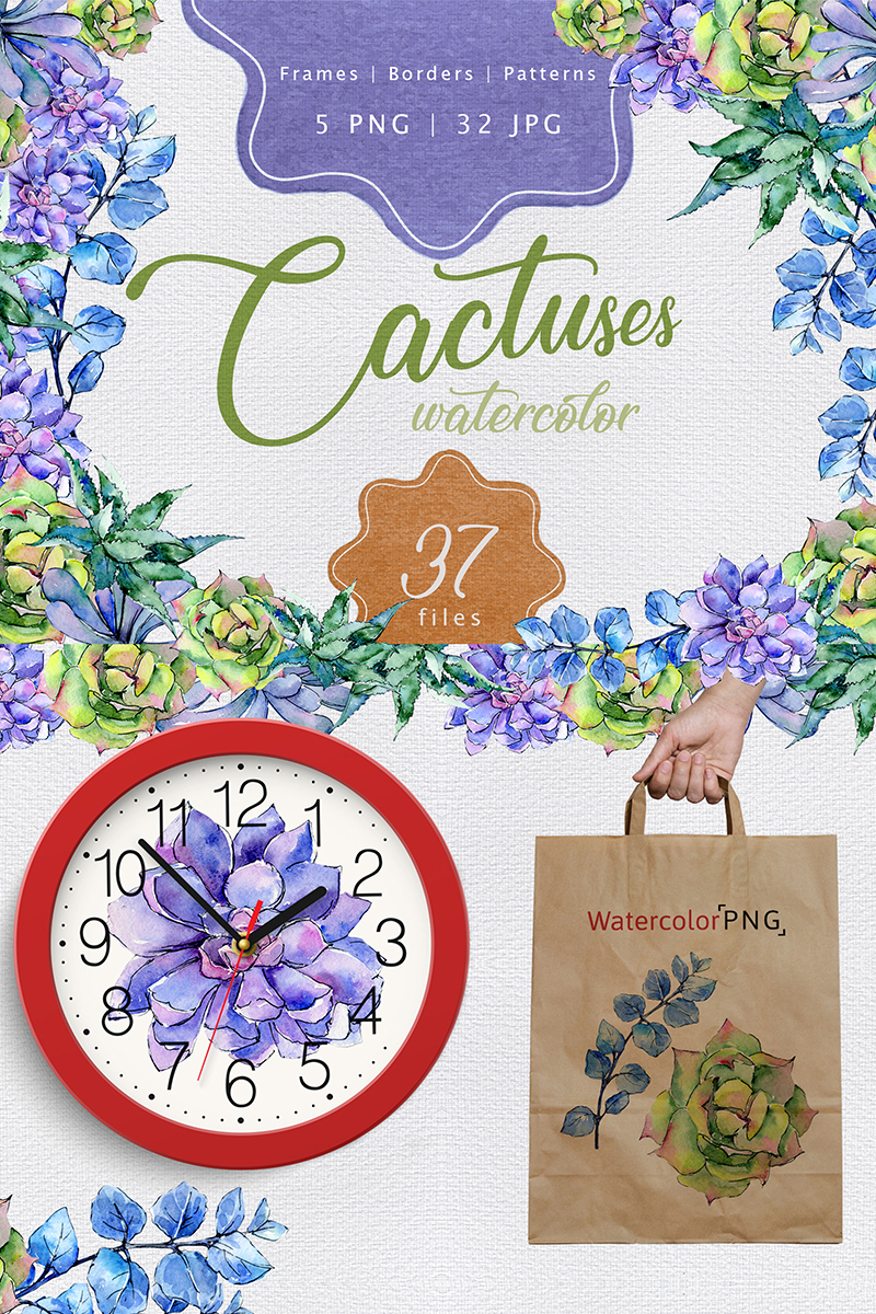 Download Иллюстрация "Colorful Cactuses PNG Watercolor Set - Illustration" / Colorful Cactuses PNG Watercolor Set - Illustration - Иллюстрация на тему графика watercolor illustration tropical tropic hawaii summer plant leaf leaves floral cactus beach hawaiian succulent green aloe exotic jungle botanical blue