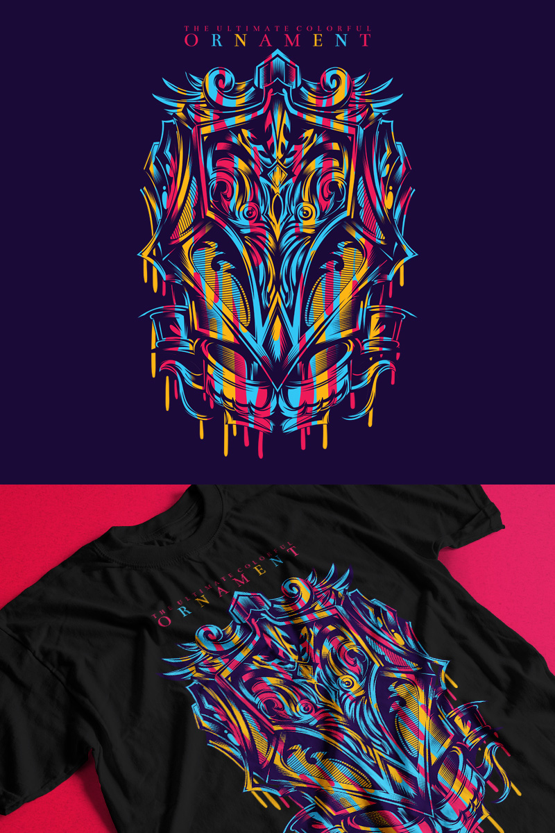 Download T-shirt Design "Colorful Ornament - T-shirt Design" / Colorful Ornament - T-shirt Design - T-shirt Design на тему графика illustration t-shirt design artwork apparel merch fashion style creative artistic custom dope streetwear colorful medieval artsy festival object ornament