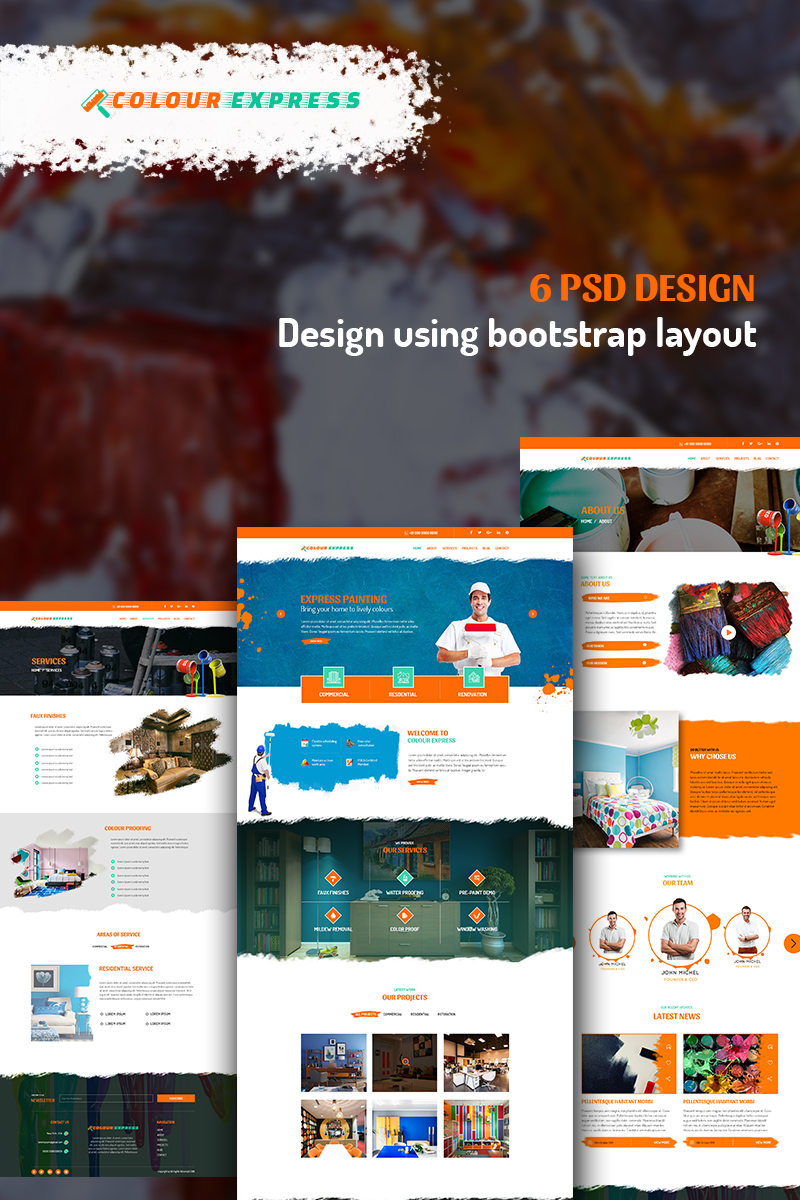 Download PSD шаблон "ColourExpress - Multipurpose Home Painting PSD Template" / ColourExpress - Multipurpose Home Painting PSD Template - PSD шаблон на тему дизайн экстерьера home painting interior exterior theme template psd