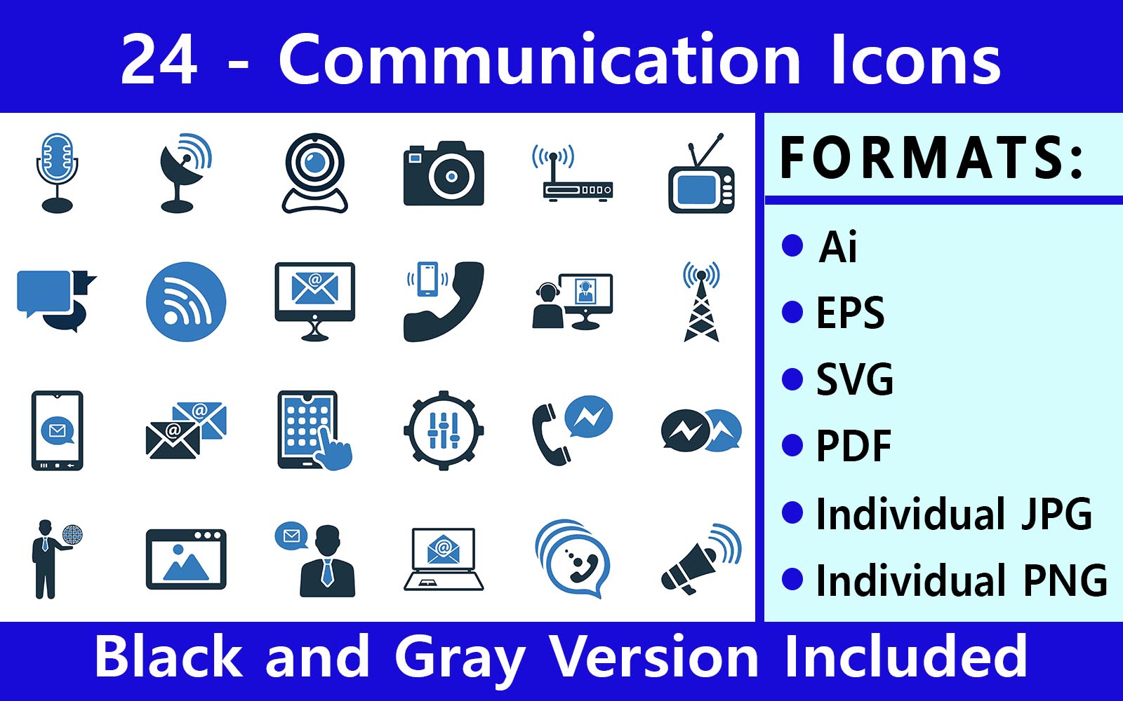 Download Набор иконок "Communication Pack | Multipurpose Vector Icon Set" / Communication Pack | Multipurpose Vector Icon Set - Набор иконок на тему графика communication,devices,contact,camera,satellite,antenna,multimedia,email,medium,tower,wireless,radio,router,rss,tv,headphone,sms,call,video conference,phone