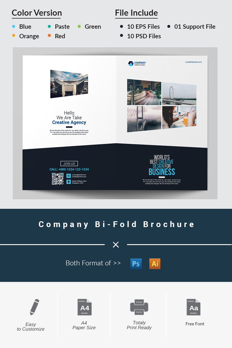 Download Фирменный стиль "Company Bi-Fold Brochure - Corporate Identity Template" / Company Bi-Fold Brochure - Corporate Identity Template - Фирменный стиль на тему графика a4 agency bi-fold bifold blue brochure business clean colorful company corporate creative design editable folding indesign key visual leaflet lifestyle