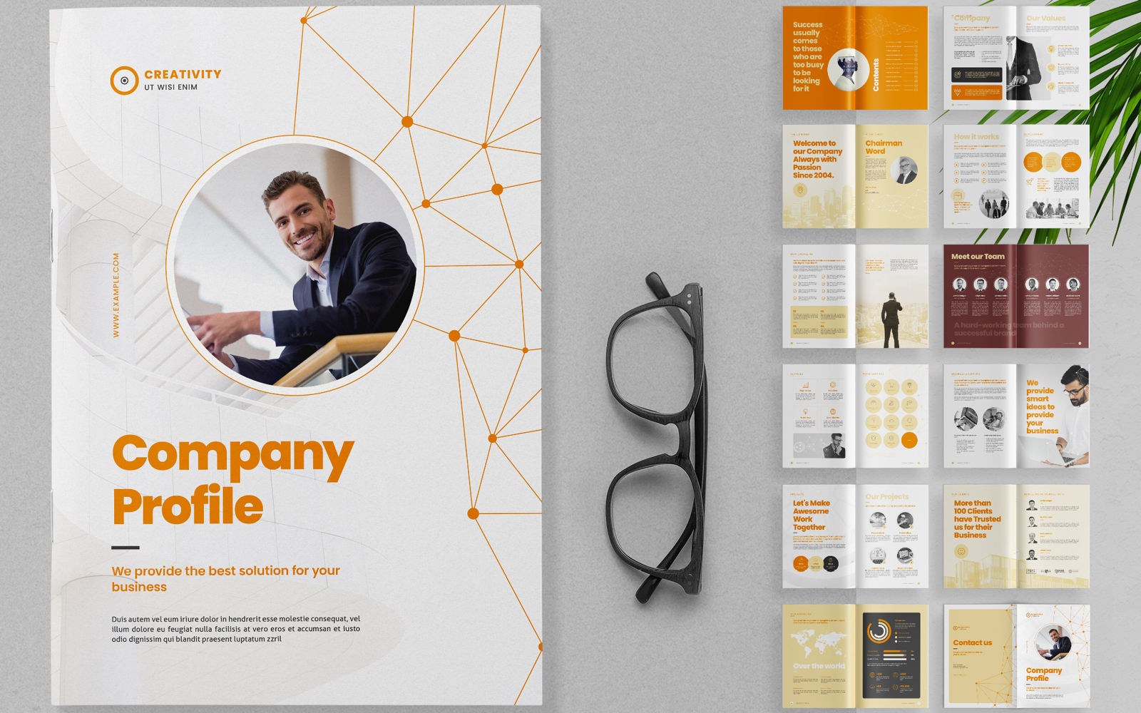 Download Фирменный стиль "Company Profile Brochure Creative - Corporate Identity Template" / Company Profile Brochure Creative - Corporate Identity Template - Фирменный стиль на тему графика company,marketing,business,white,team,service,network,connection,orange,creative