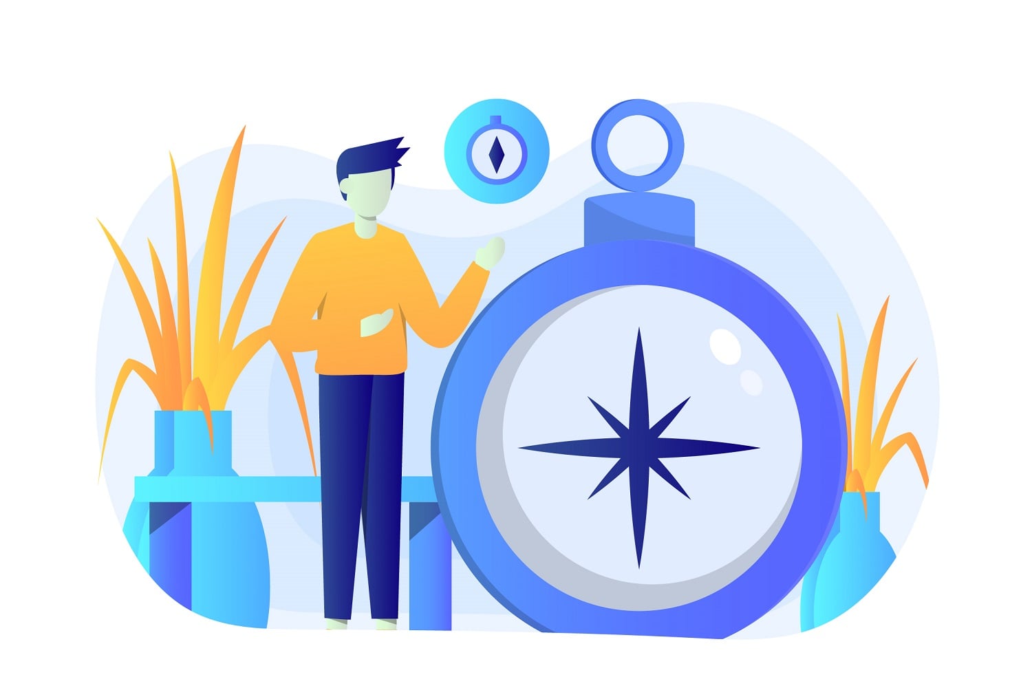 Download Vector "Compass Navigation Flat Illustration - Vector Image" / Compass Navigation Flat Illustration - Vector Image - Vector на тему графика illustration,vector,flat,backpack,backpacker,travel,camping,adventure,nature,forest,campfire,tent,vacation,hiking,outdoor