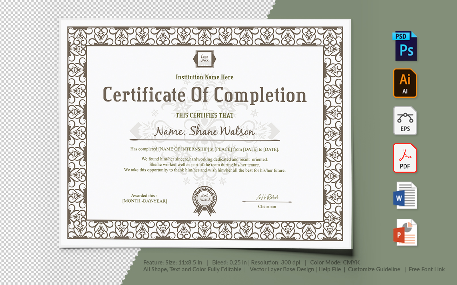 Download Шаблон сертификата "Completion Certificate Template" / Completion Certificate Template - Шаблон сертификата на тему графика certificate,appreciation,recognition,completion,achivement,school,collage,diploma,graduation,reward,design,template,printable,editable,custom,pdf,word,psd,eps,powerpoint Download Шаблон сертификата "Completion Certificate Template" / Completion Certificate Template - Шаблон сертификата на тему графика certificate,appreciation,recognition,completion,achivement,school,collage,diploma,graduation,reward,design,template,printable,editable,custom,pdf,word,psd,eps,powerpoint