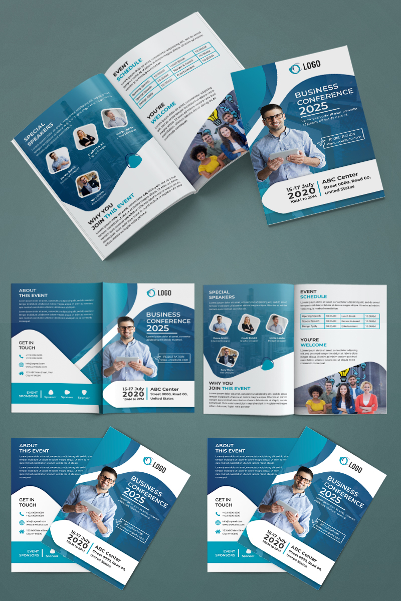 Download Фирменный стиль "Conference Bifold Brochure - Corporate Identity Template" / Conference Bifold Brochure - Corporate Identity Template - Фирменный стиль на тему графика corporate,business,agency,brochure,bifold,bi-fold,bifoldbrochure,marketing,company,brochuredesign,a4,print-ready,psd,template,professional,internet,conference,event,annual,meeting
