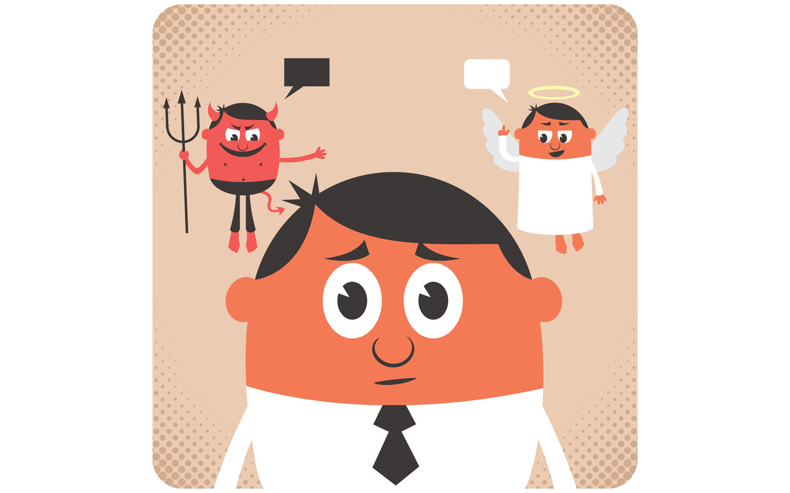 Download Иллюстрация "Conscience - Illustration" / Conscience - Illustration - Иллюстрация на тему графика dilemma,moral,conscience,hesitation,angel,devil,advice,decision,choice,thinking,uncertainty,guilt,concepts,good,evil,struggle,mind,guardian,man,person