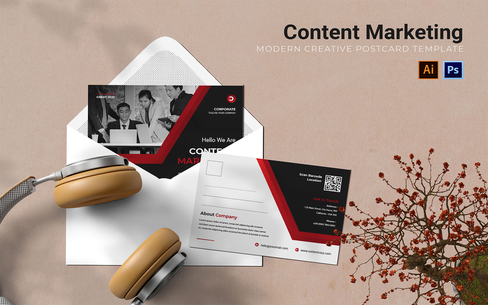 Download Фирменный стиль "Content Marketing Postcard AC - Corporate Identity Template" / Content Marketing Postcard AC - Corporate Identity Template - Фирменный стиль на тему графика business,company,print,paper,design,promotion,thanks,marketing,creative,elegant