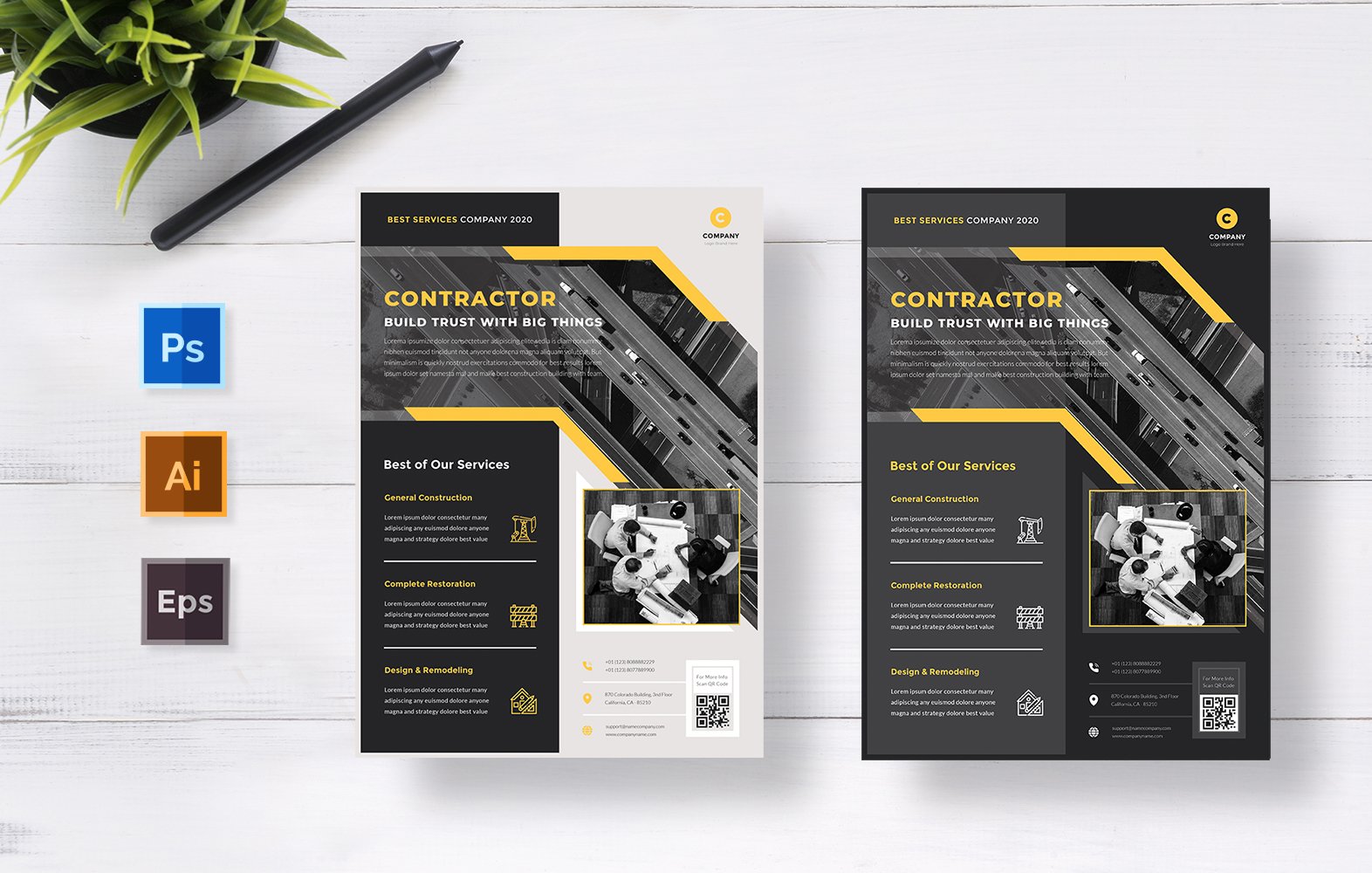Download Фирменный стиль "Contractor – Multipurpose Business Flyer - Corporate Identity Template" / Contractor – Multipurpose Business Flyer - Corporate Identity Template - Фирменный стиль на тему графика advertising,business,clean,commercial,company,corporate,creative,flyer,modern,multipurpose,orange,promotion,service,services,agency,enterprise,marketing,minimalist,professional,elegant