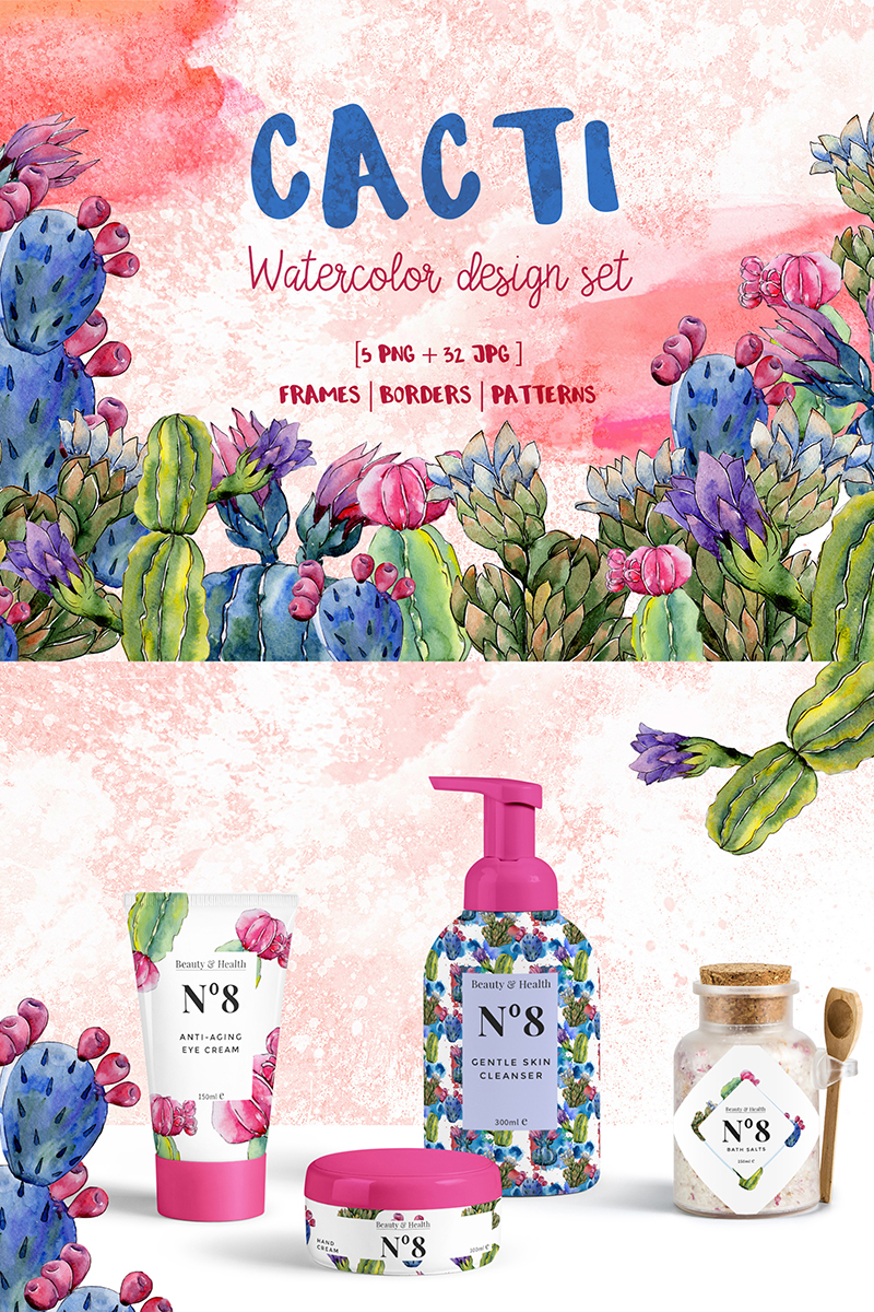 Download Иллюстрация "Cool Cacti Tropical flower PNG Watercolor Set - Illustration" / Cool Cacti Tropical flower PNG Watercolor Set - Illustration - Иллюстрация на тему графика watercolor foliage stem garden branch illustration tropical tropic summer green cacti leaf leaves floral hawaiian succulent exotic jungle botanical background