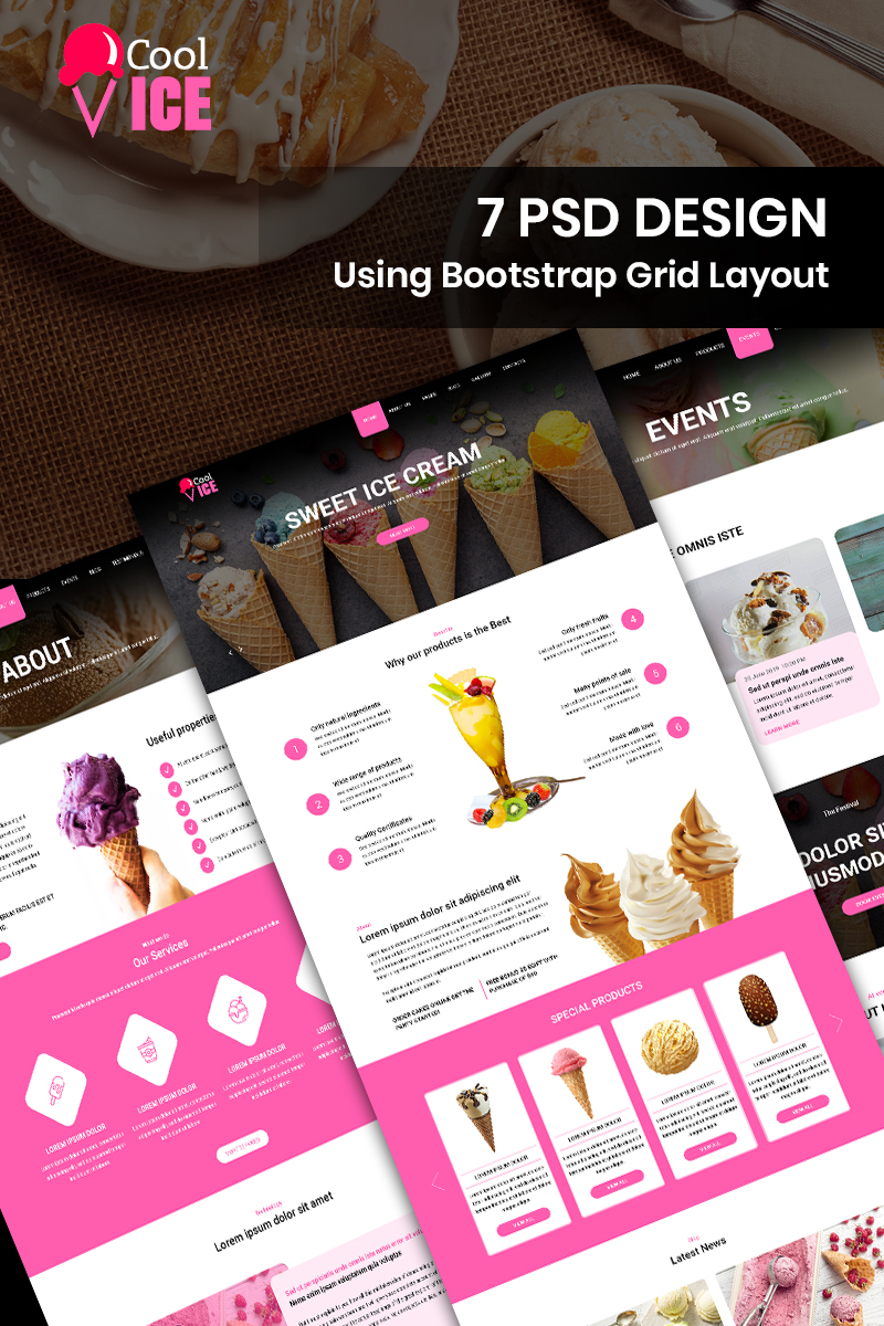 Download PSD шаблон "Cool Ice - Ice Cream Shop PSD Template" / Cool Ice - Ice Cream Shop PSD Template - PSD шаблон на тему мороженое food shop template theme psd photoshop