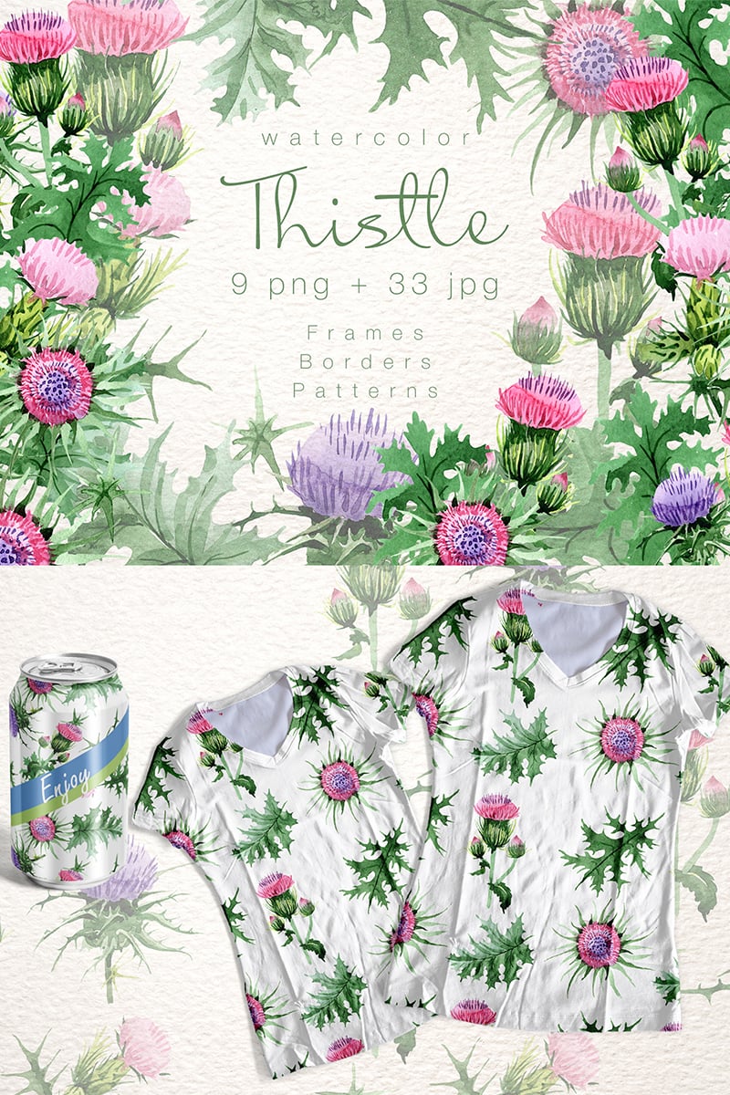 Download Иллюстрация "Cool Thistle PNG Watercolor Set - Illustration" / Cool Thistle PNG Watercolor Set - Illustration - Иллюстрация на тему графика watercolor illustration pink purple thistle drawing background colorful drawn paint leaf plant wildflower seasonal foliage flower sprout stem textile botanical