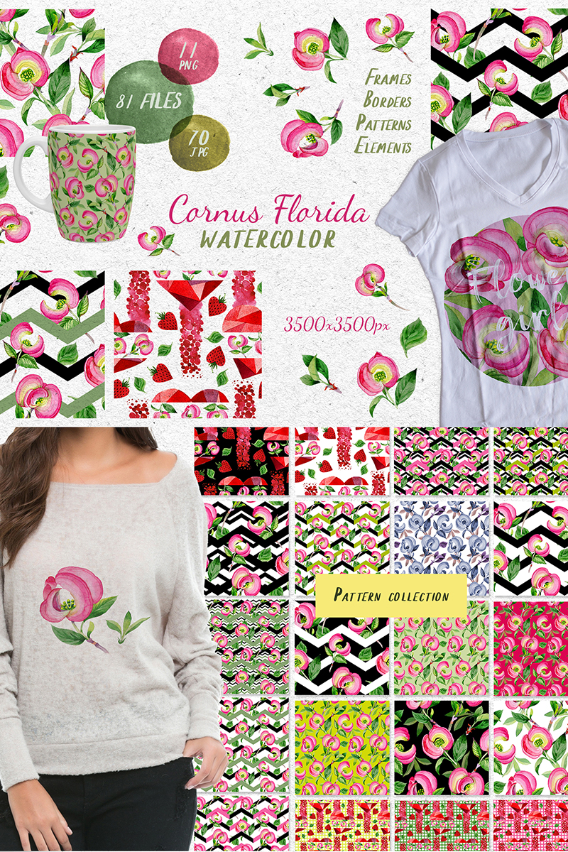 Download Иллюстрация "Cornus Florida Flowers PNG Watercolor Set - Illustration" / Cornus Florida Flowers PNG Watercolor Set - Illustration - Иллюстрация на тему графика watercolor illustration colorful drawing pink cornus background drawn paint leaf plant wildflower seasonal foliage flower sprout stem textile botanical garden