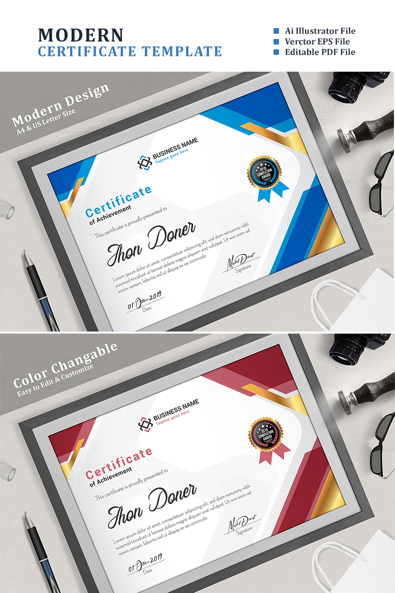 Download Шаблон сертификата "Corporate Elegant Certificate Template" / Corporate Elegant Certificate Template - Шаблон сертификата на тему графика achievement appreciation award diploma completion acknowledgement certificates eyelash nail extension modern luxury multipurpose professional training red blue gold green yellow