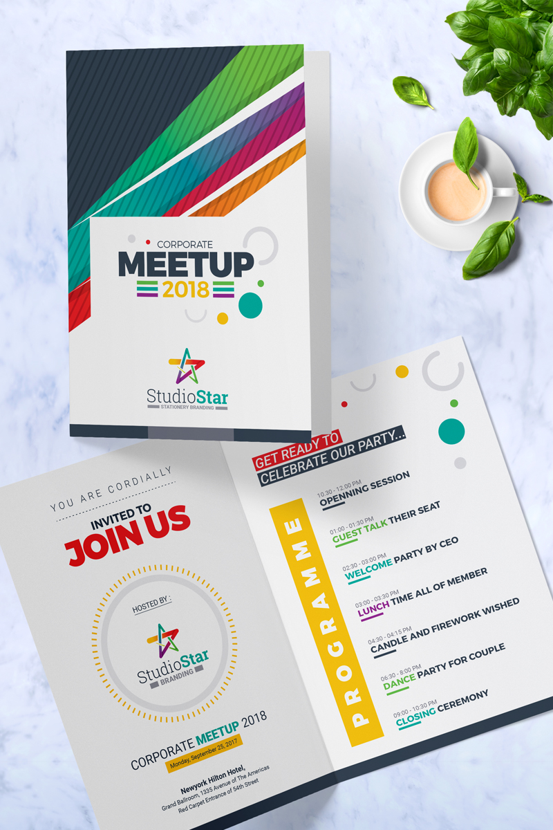 Download PSD шаблон "Corporate Meet-up Invitation Card Template PSD Template" / Corporate Meet-up Invitation Card Template PSD Template - PSD шаблон на тему дизайн студия corporate meetup 2018 watercolour invitation suite thank you card diy floral invite template save the date postcard reception party elegant